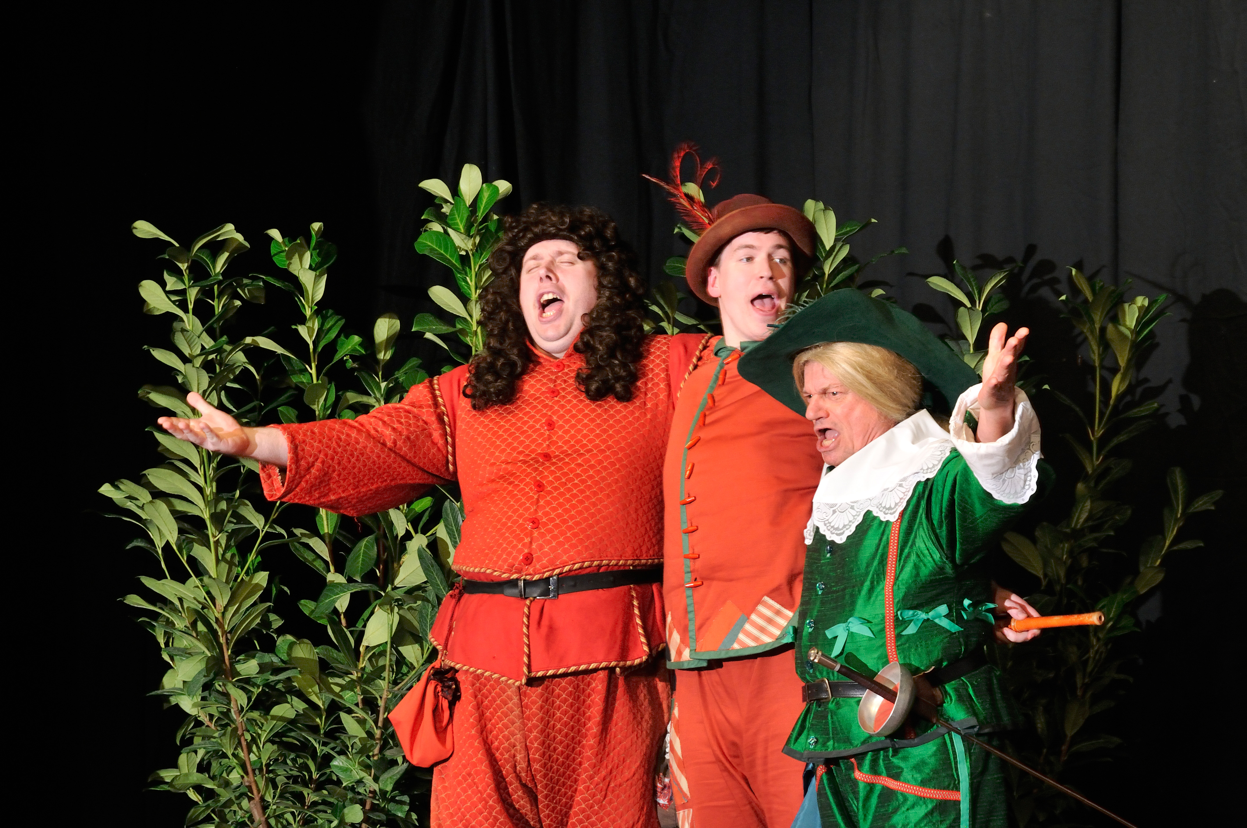 Olivia (Cheryl de Bie) and Viola (Elizabeth Hughesdon)  Sir Toby Belch (Andy Noakes), Feste (Mark Nurdin) and Sir Andrew Aguecheek (John O'Sullivan)  Maria (Margaret Bown), Sir Toby Belch (Andy Noakes) and Malvolio (David Clark)